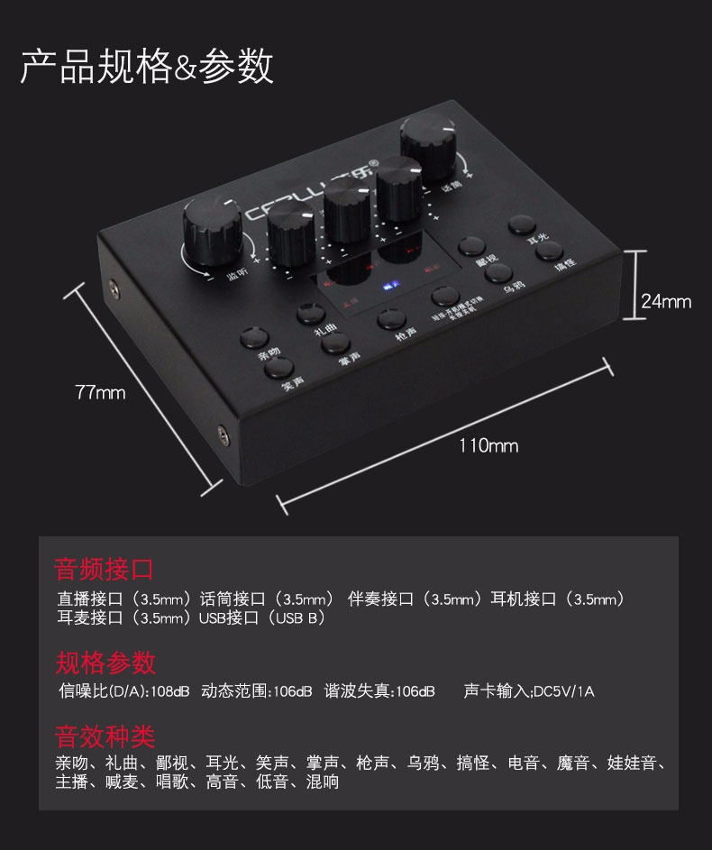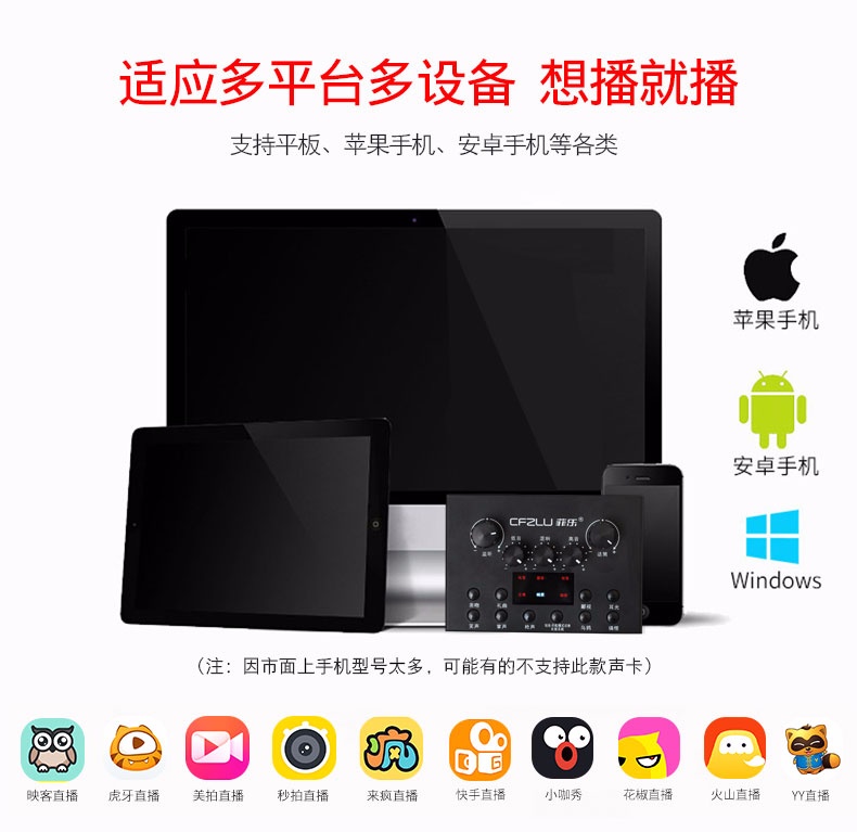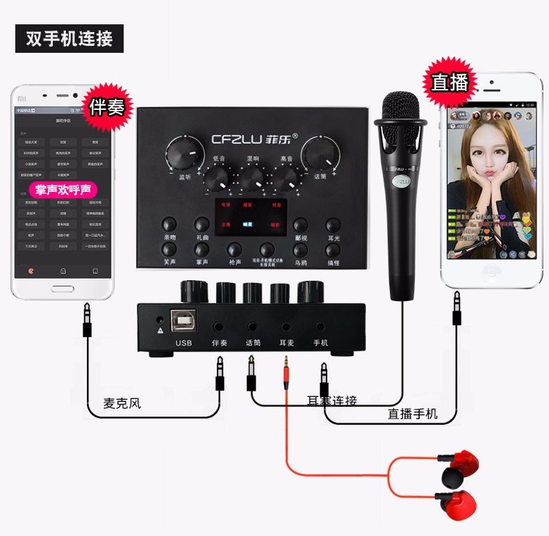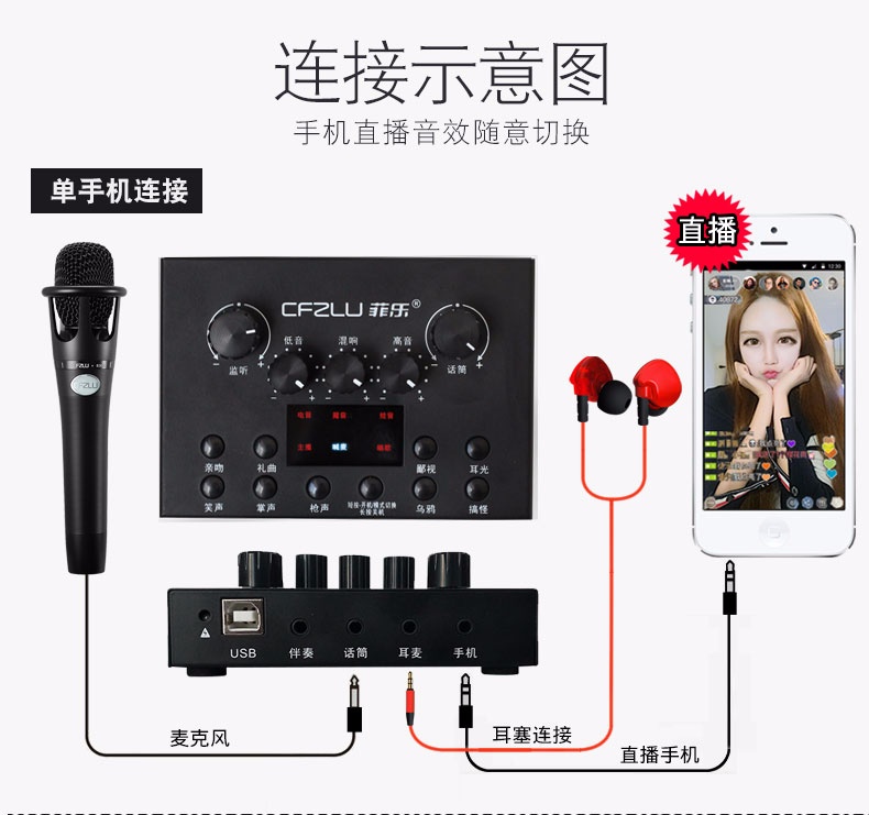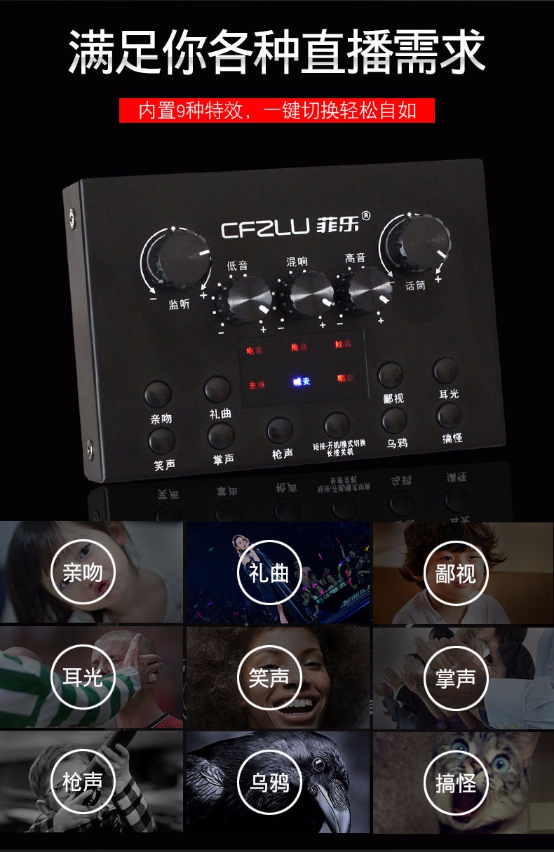 手机主播喊麦专用声卡,手机直播K歌,实时监听耳返,适应多平台、多设备,自由切换各种音效,简单方便。