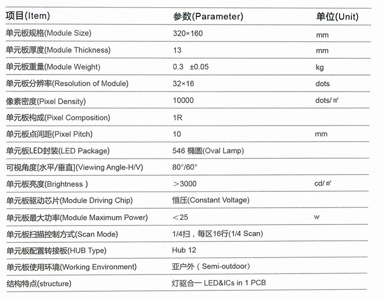 320*160mm,单板分辨率32*16,半户外单红成品P10