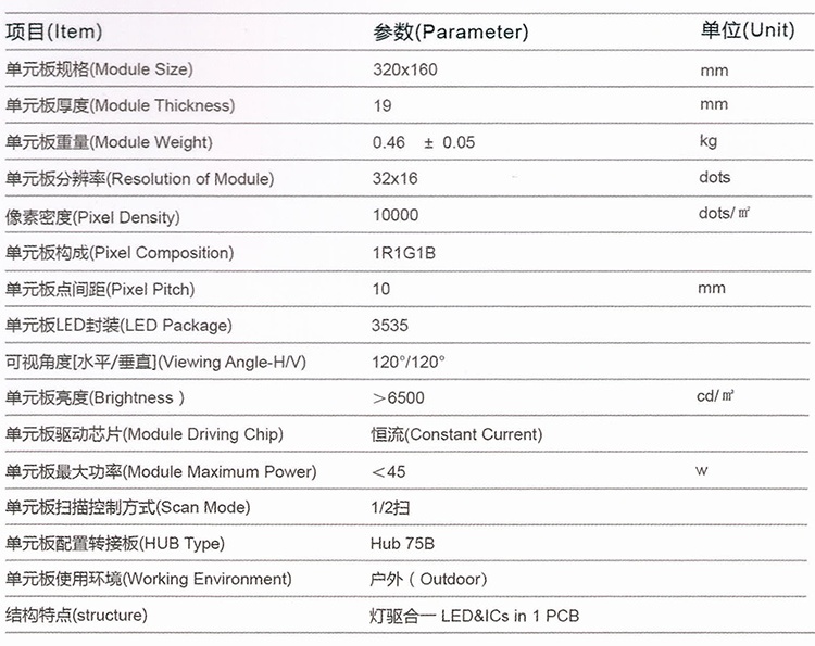 320*160mm,单板分辨率32*16