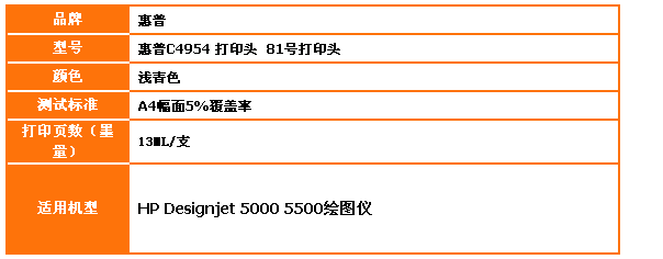 惠普(HP)81号打印头 C4954A浅青色 HP5000 5500喷头