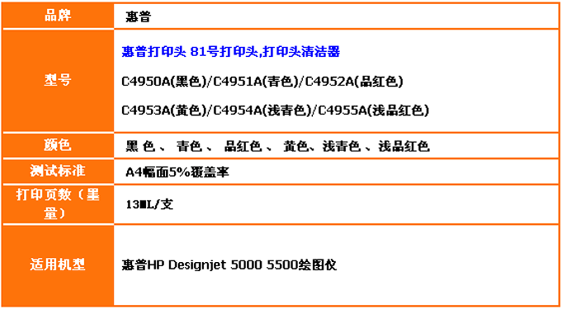 惠普(HP) 81号打印头 C4950A黑色 HP5000 5500PS墨头
