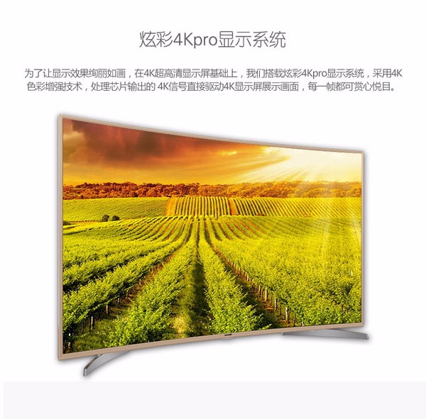 55英寸14核4K曲面智能电视 搭载HDR 超高清电视 最佳观看距离:3~3.5米, 分辨率:3840*2160