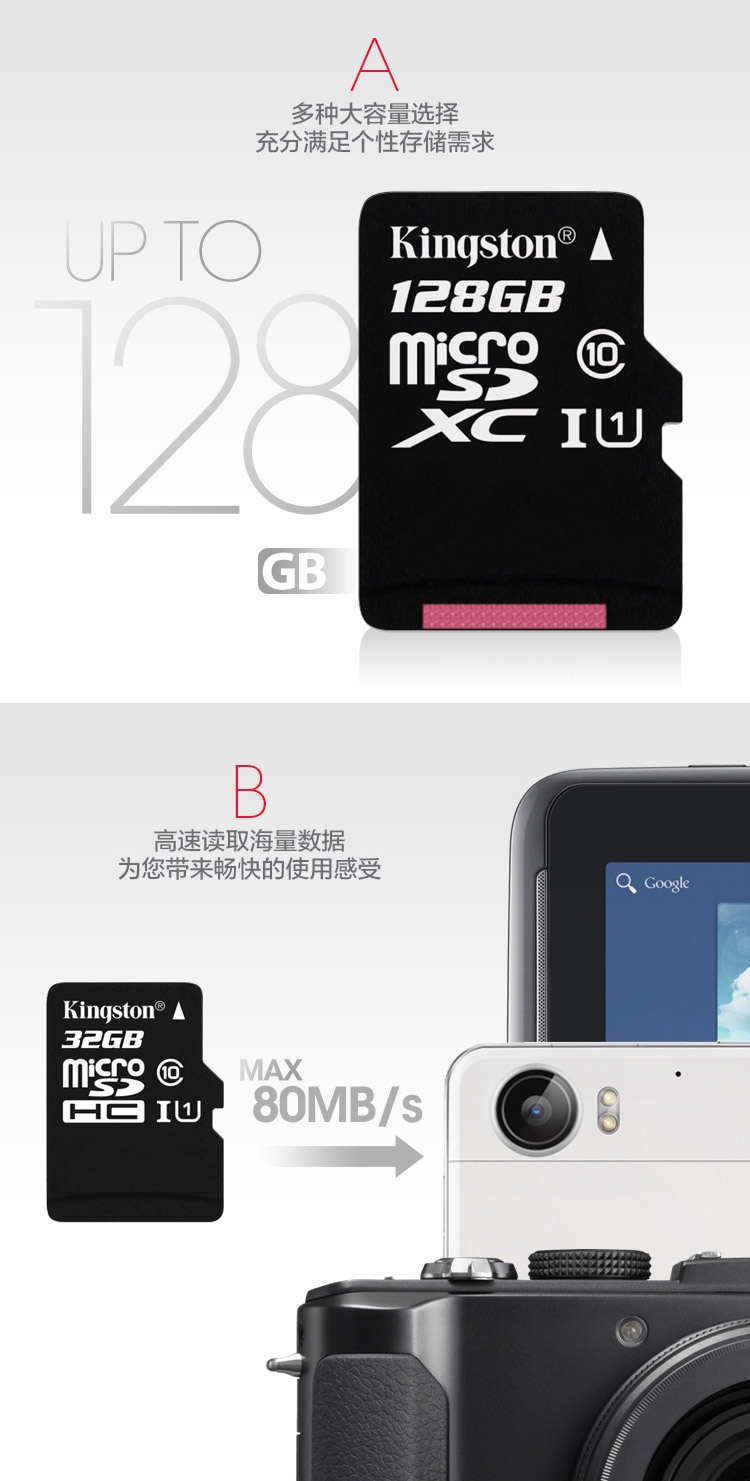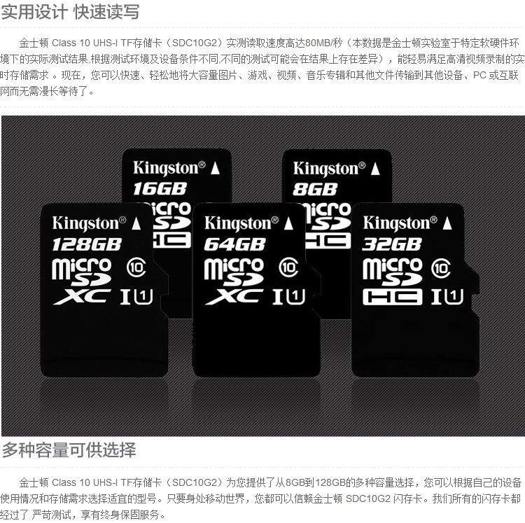 C10,高速传输80M/s,金士顿品质,国行正品,假一罚三,全省最低,终身保固!