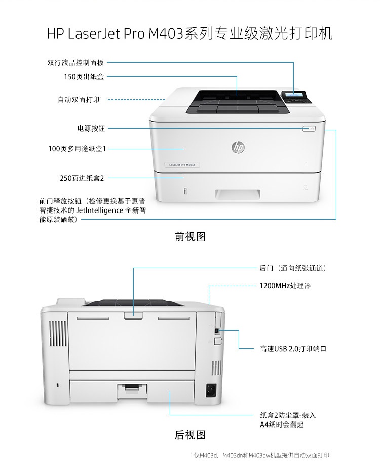 | 特征 | 自动双面打印、N-up打印、分页、“零”秒预 热技术、惠普自动开关机技术、基于惠普智捷 技术的JetIntelligence全新智能硒鼓平台 |
