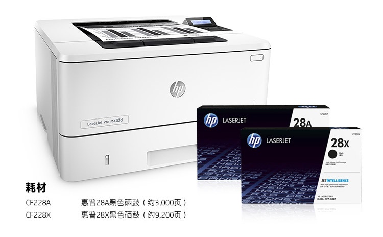 | 耗材 | 惠普28A黑色硒鼓 (约3,000页);惠普28X黑色硒鼓 (约9,200页) |