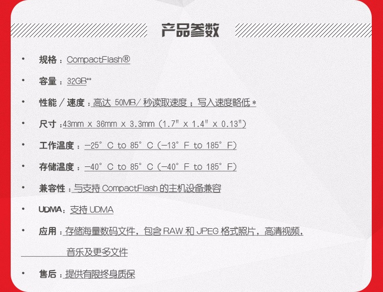 | 适用型号 | 带有CF卡卡槽设备的主机,如:高端相机,摄像机等 |