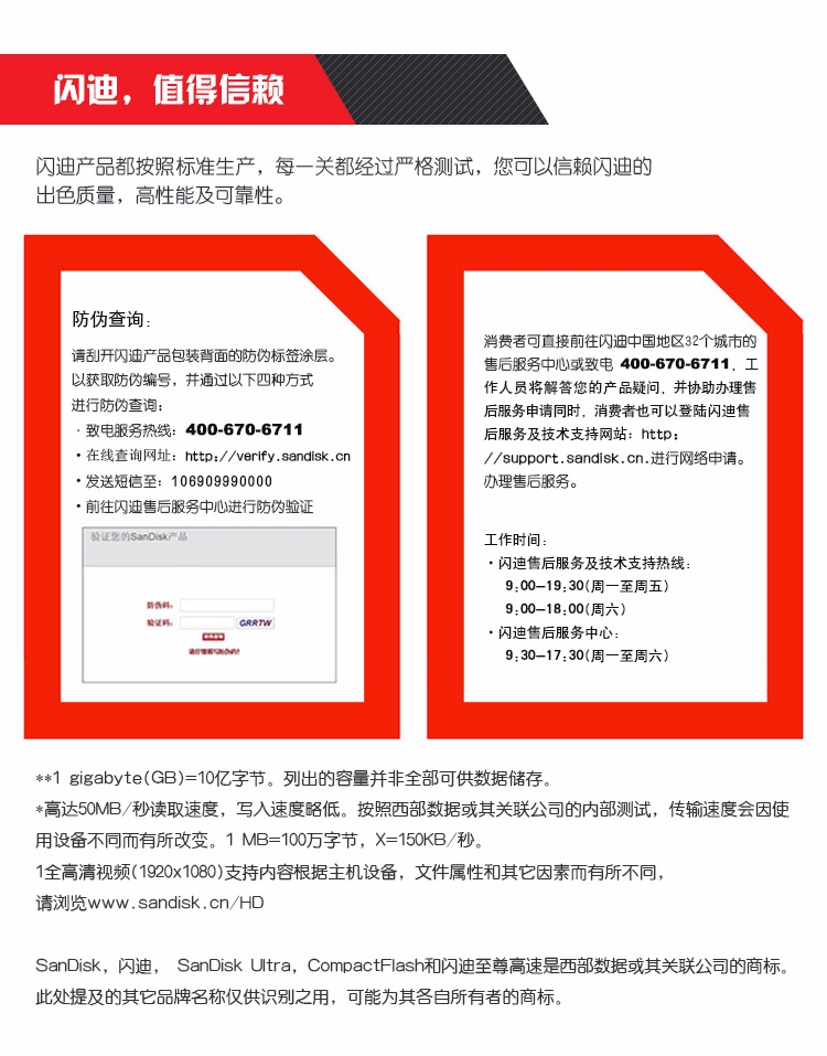 传输速度50M/s,闪迪正品,10年保固,假一罚三,全省最低!