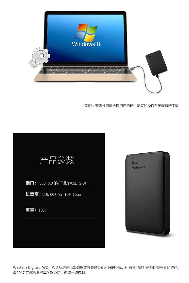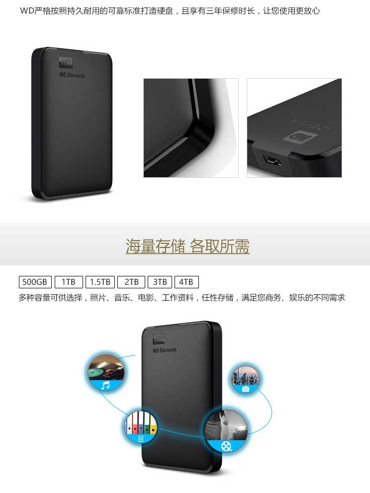西部数据 E元素 3T 移动硬盘