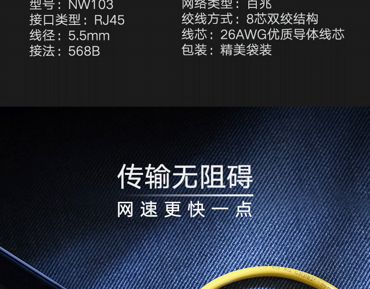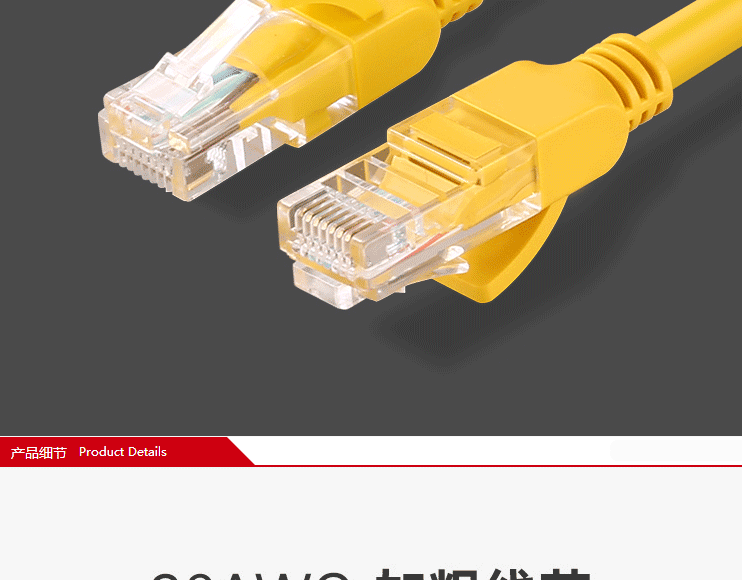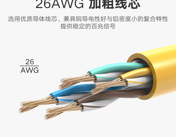 超五类百兆铜包铝,26AWG加粗线芯,双绞结构