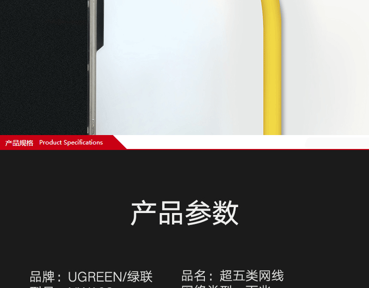 绿联 Cat5e网线黄色 1米 11230 NW103