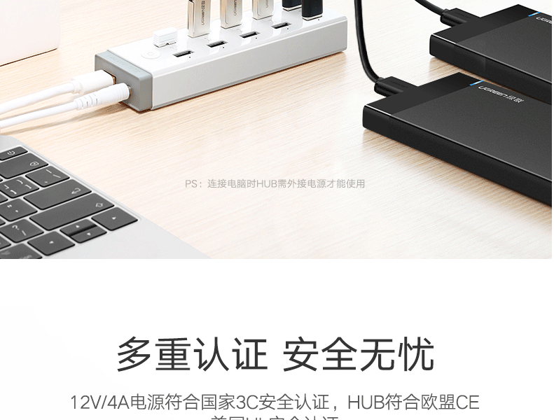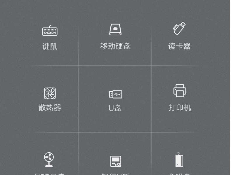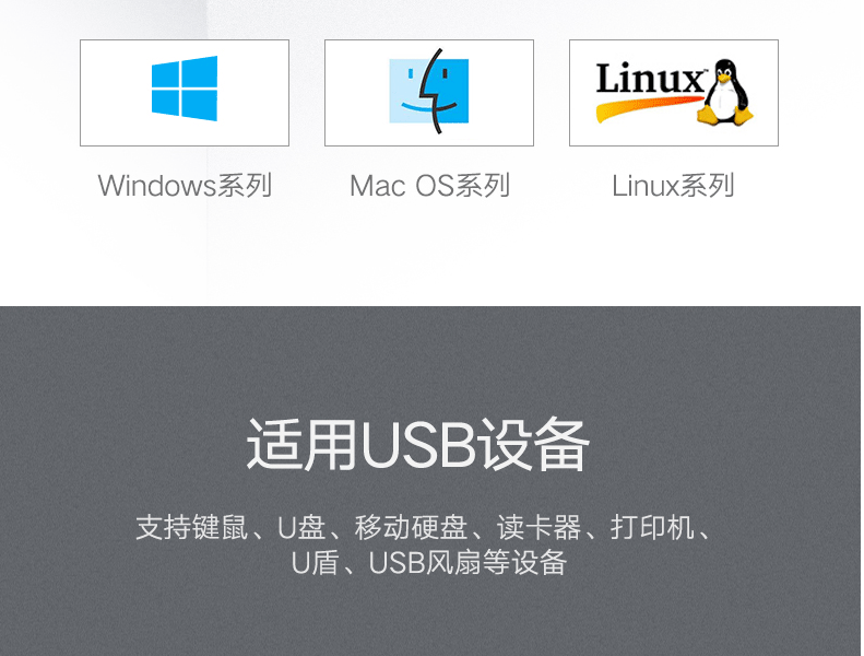 支持充电,群控功能,配4A电源,可外接移动硬盘、键盘、鼠标、平板、手机、打印机的设备