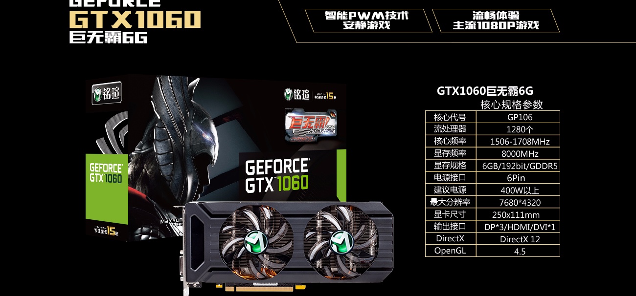 铭瑄 MS-GTX1060 巨无霸 6G 显卡