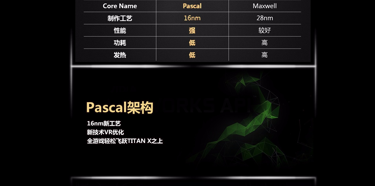 | 特色功能 | 支持Simultaneous Multi-ProjectionVR图像矫正技术,VRWorks Audio虚拟现实音频技术,Ansel截图功能,PhysX物理加速技术,NVIDIA CUDA,Pure |