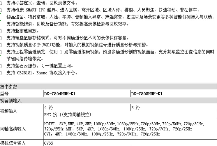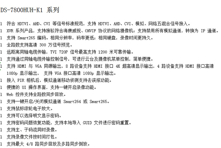 海康威视 DS-7808HUH-K1 7800HUH-K1系列录像机