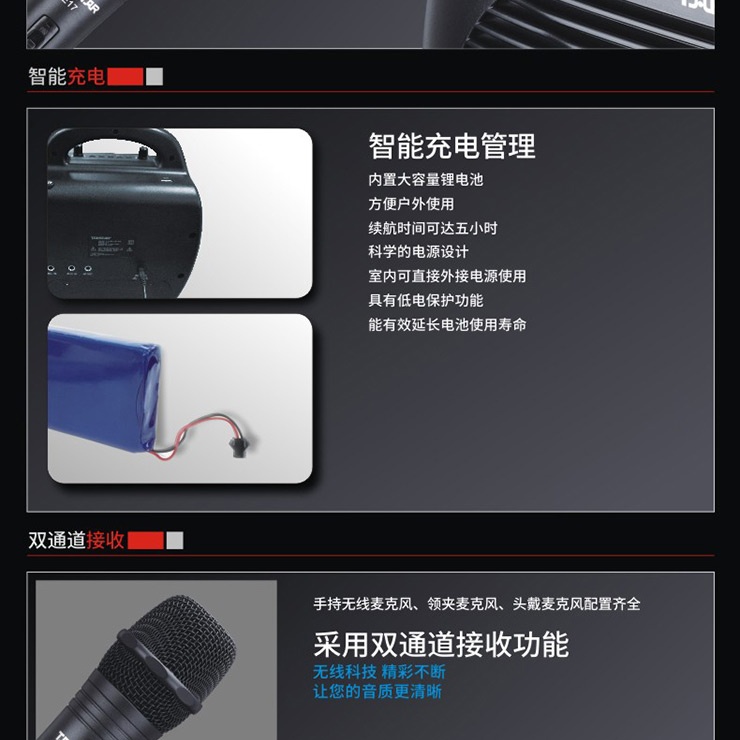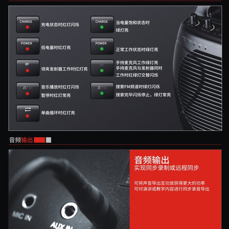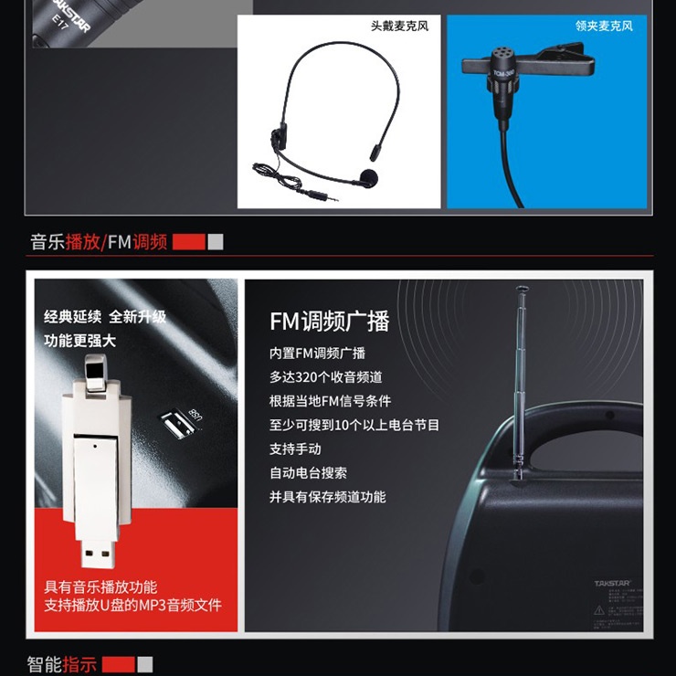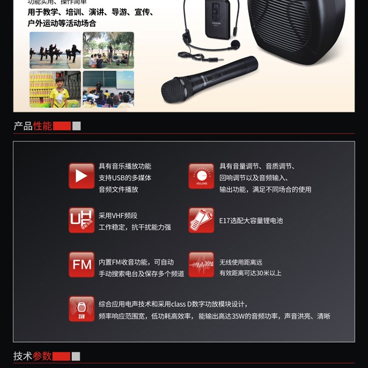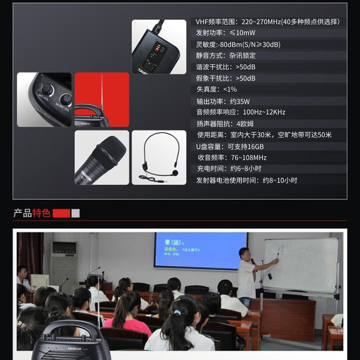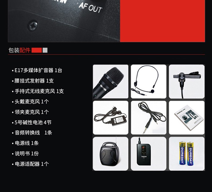 | 重量 | 扩音器主机:2543g 手持发射:255g 腰挂发射:80g |