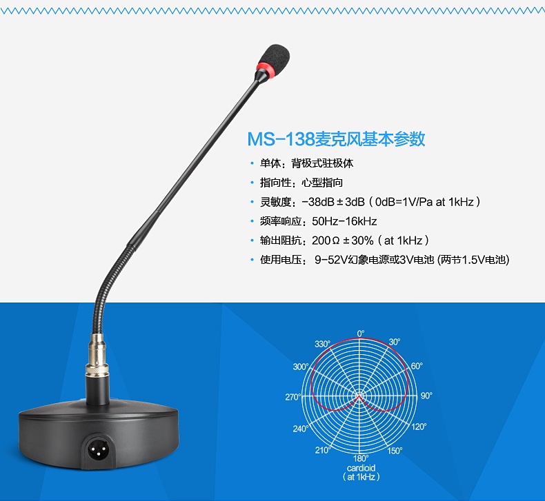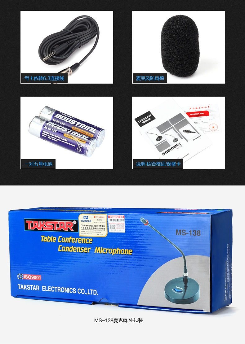 | 包装清单 | 标准配置:纸盒包装、麦克风 1支、 防风海绵套 1只、连接线 1条、5号电池 2节 (注:所有线材、电源适配器、电池等易消耗品不在保修范围内) |