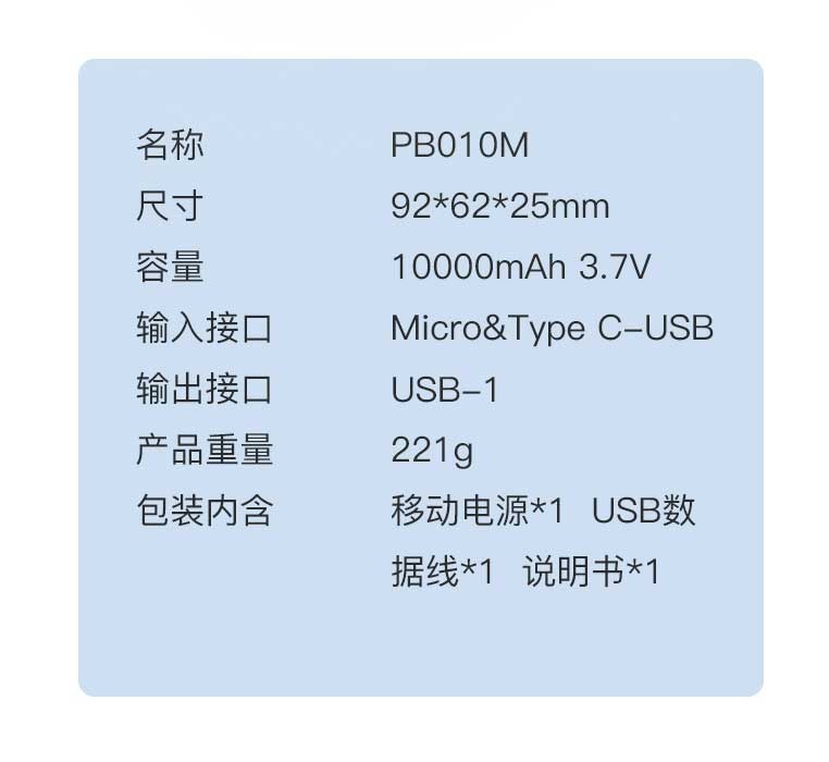大迈(DM) PB010M 10000毫安 移动电源 充电宝