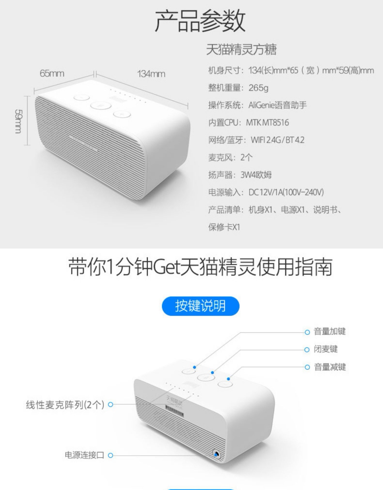 天猫精灵 方糖 智能音箱 白色