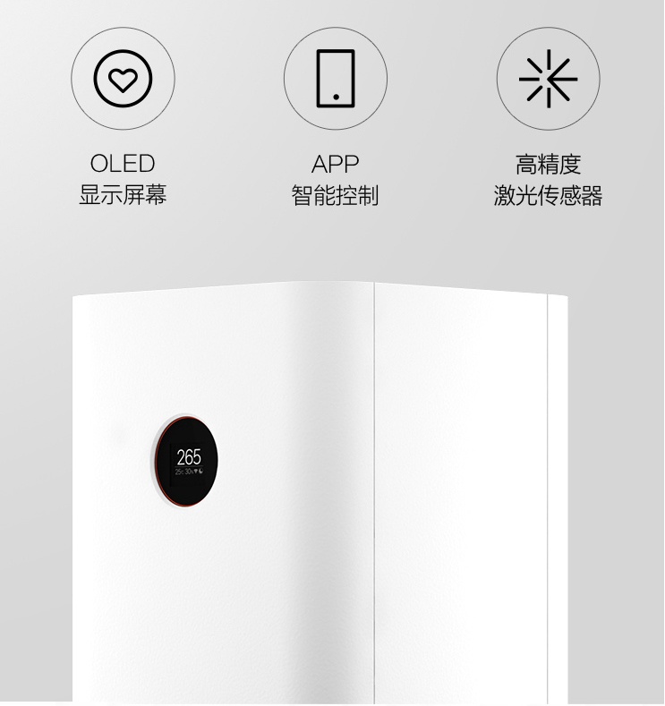 OLED 显示屏幕 / 激光颗粒物传感器 / 500m³/h颗粒物 CADR / 60㎡适用面积
