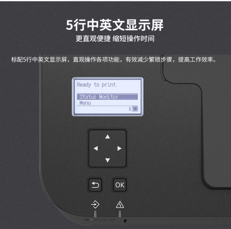 黑金刚,28PPM,鼓 粉分离。鼓寿命25000页,粉仓1700页,5行显示屏