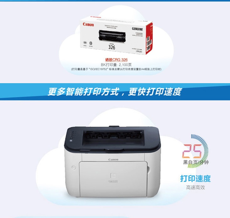 | 耗材 | CRG 326:标准容量2,100页,随机硒鼓:900页 |