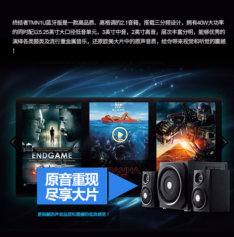 | 音箱尺寸 | 低音箱:220×227×265mm 卫星箱:110×184×135mm |
