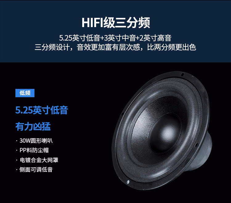 | 扬声器单元 | 5.25英寸+1.5英寸+3英寸 |