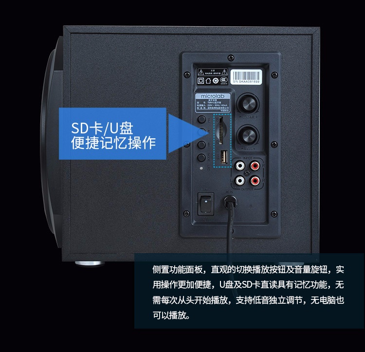 支持U盘、SD卡、三分频设计 居家及小型商铺营造音乐氛围的上佳选择