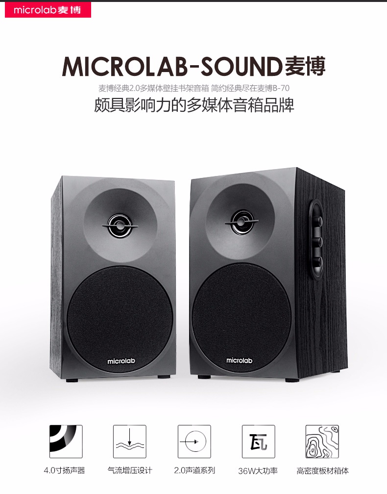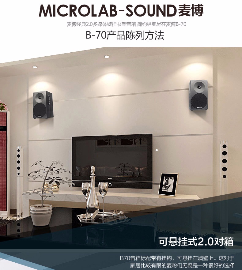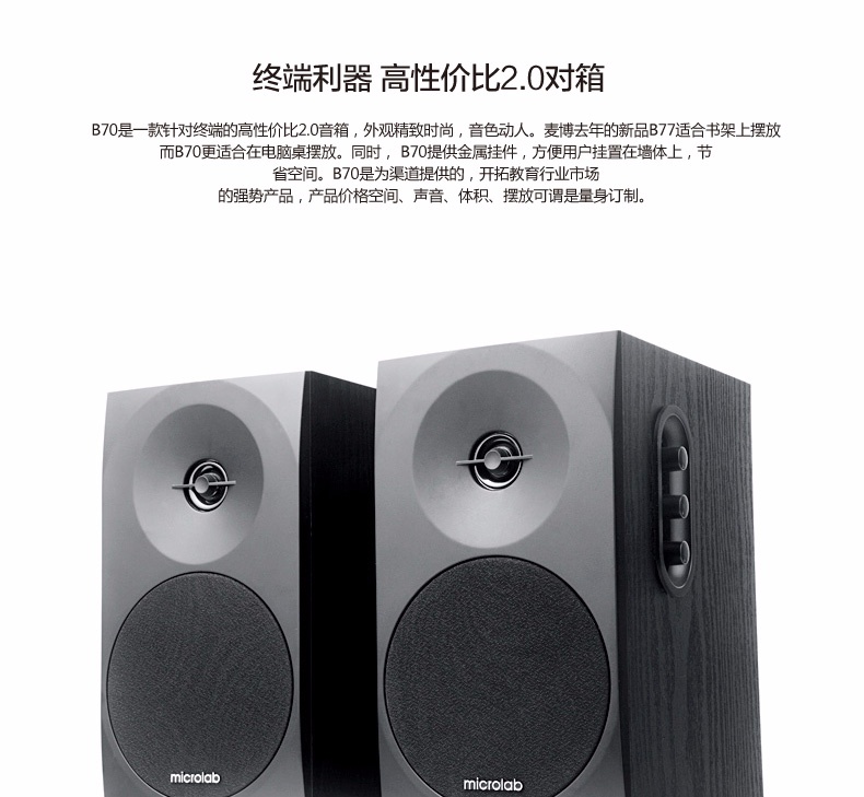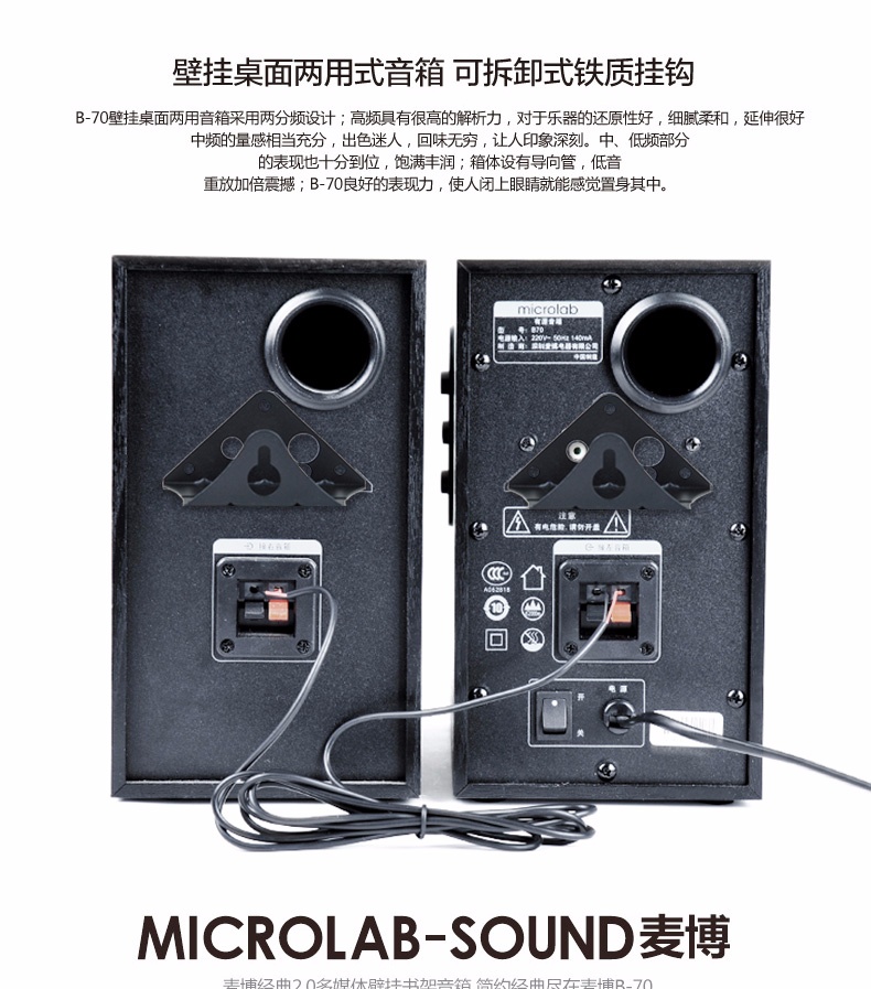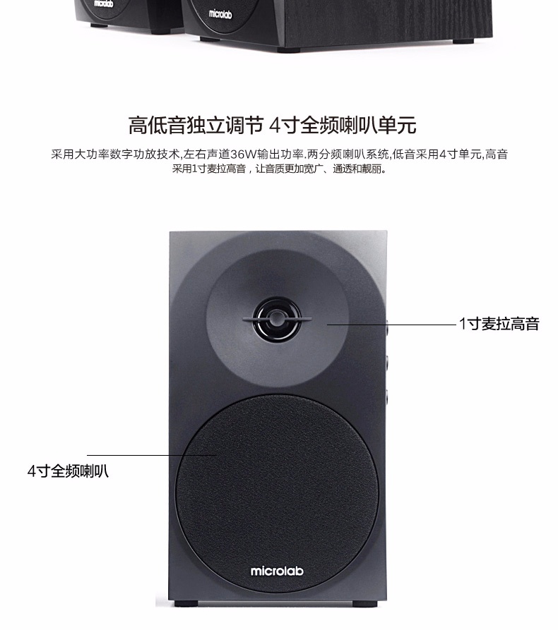 2.0木质对箱,壁挂桌面两用,20W大功率,1寸麦拉高音