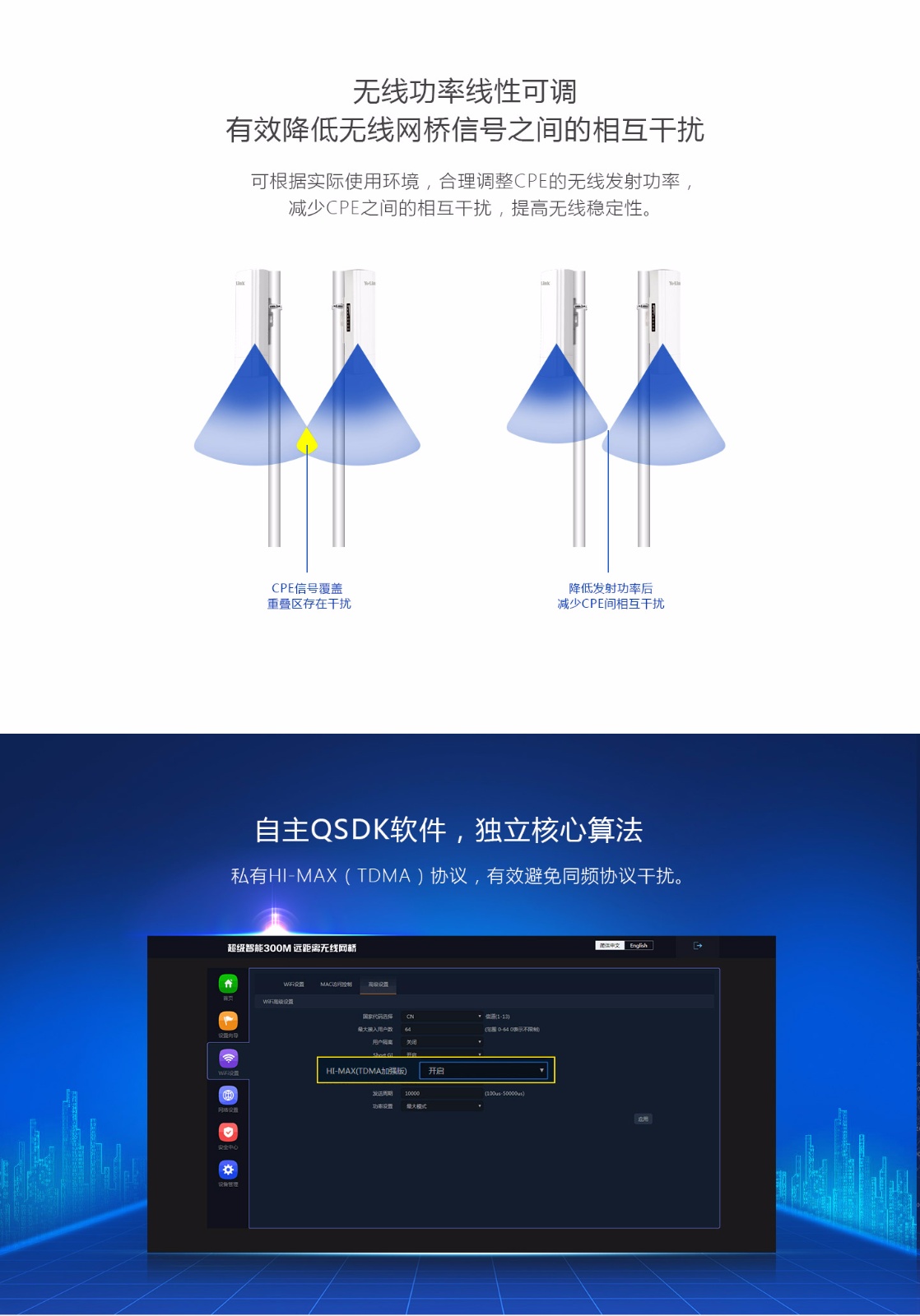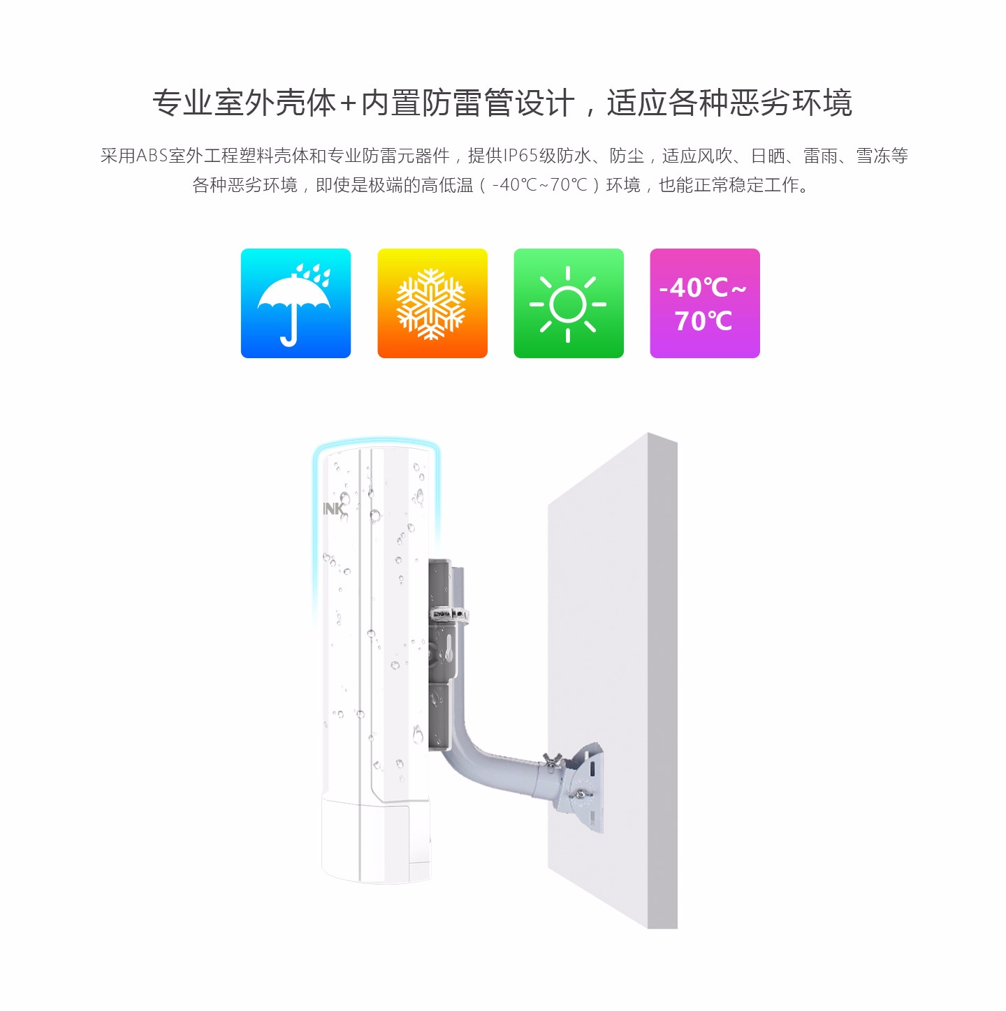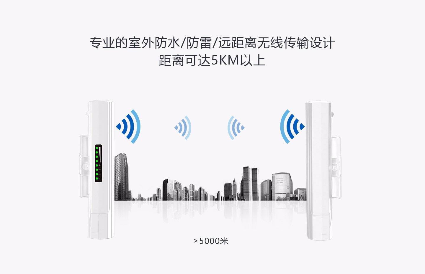 450Mbps 5G无线网桥,传输距离3公里,24V POE供电或DC供电,拨码按键桥接,IP65防护等级,吞吐量60兆。