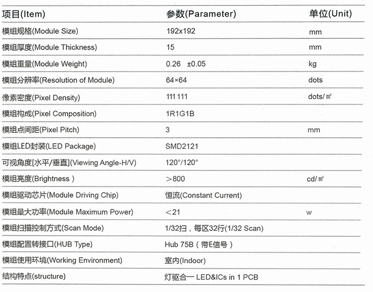 192*192mm,单板分辨率64*64,室内全彩