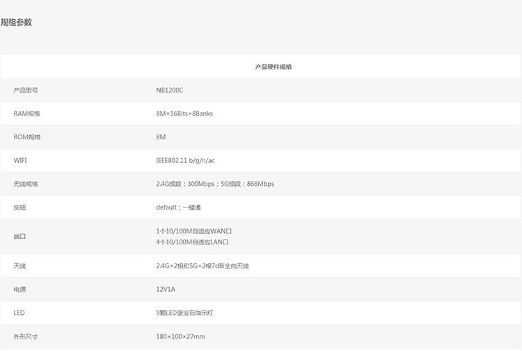 | 无线速率 | 1200M |
