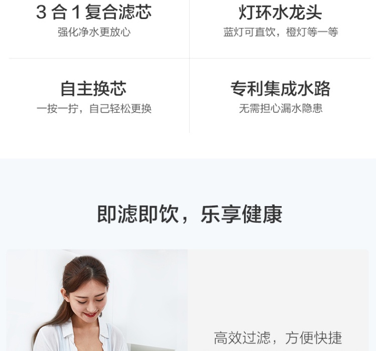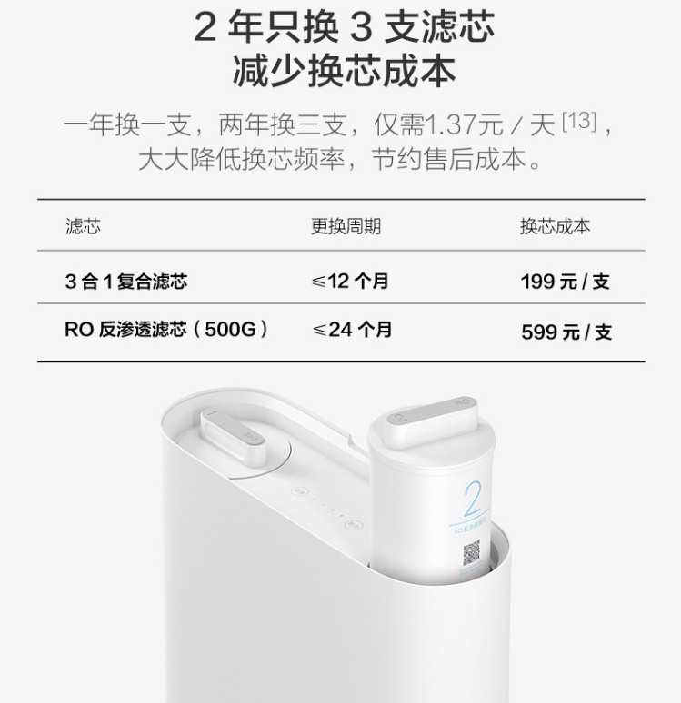 | 包装清单 | 主机*1、滤芯*2、配件盒*1、说明书*1、PE管*3 |