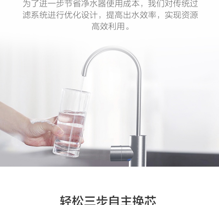 家用净水器 RO反渗透大流量直饮低废水 智能提醒 小米净水器