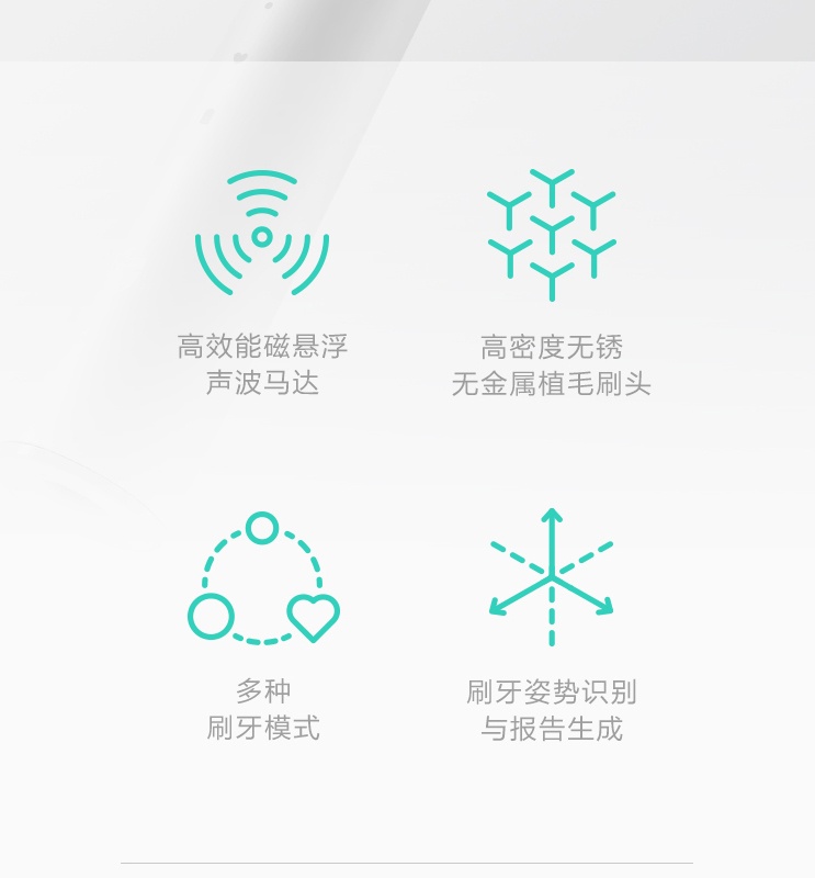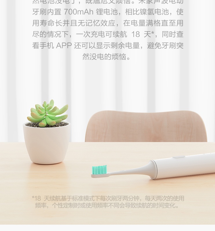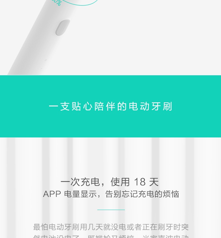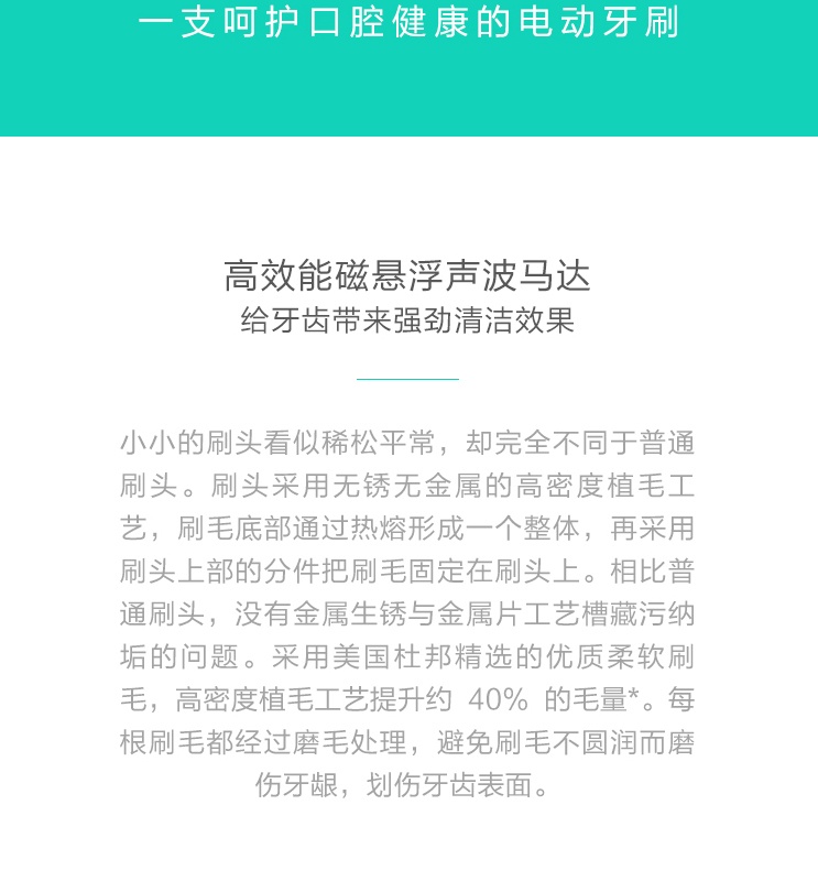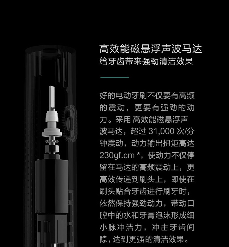 高效动力,刷得干净,高效能磁悬浮声波马达一次充电,超长使用18天