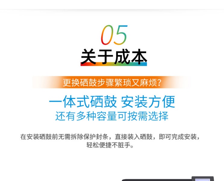 | 包装清单 | 主机x1,一体式鼓粉盒x4,电源线x1,入门指南x1, 基础操作指南/软件指南(DVD-ROM)x1,USB2.0 x1,保修卡x1 |