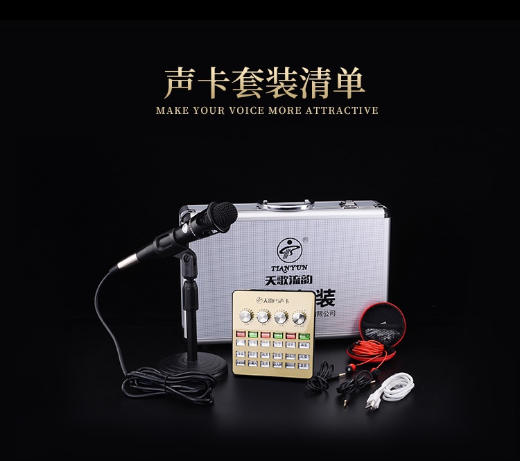 手机电脑直播都可以用,天韵声卡一个,话筒一个,话筒支架一个 ,监听耳塞一个