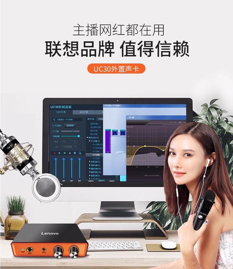 笔记本台式机电脑网络K歌喊麦外置独立声卡喊麦主播内置机架调节直播