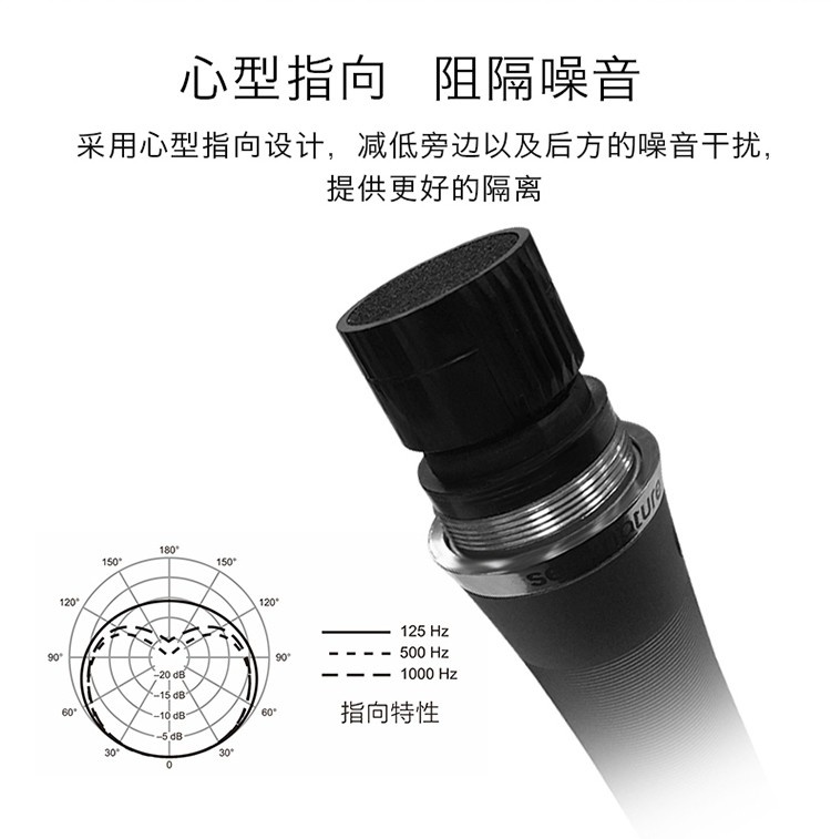 ◆电磁动圈麦克 ,声音甜美饱和 ◆心形指向拾音效果好,抗噪 ◆非线性失真小频响宽 ◆适用于DJ歌手现场演出