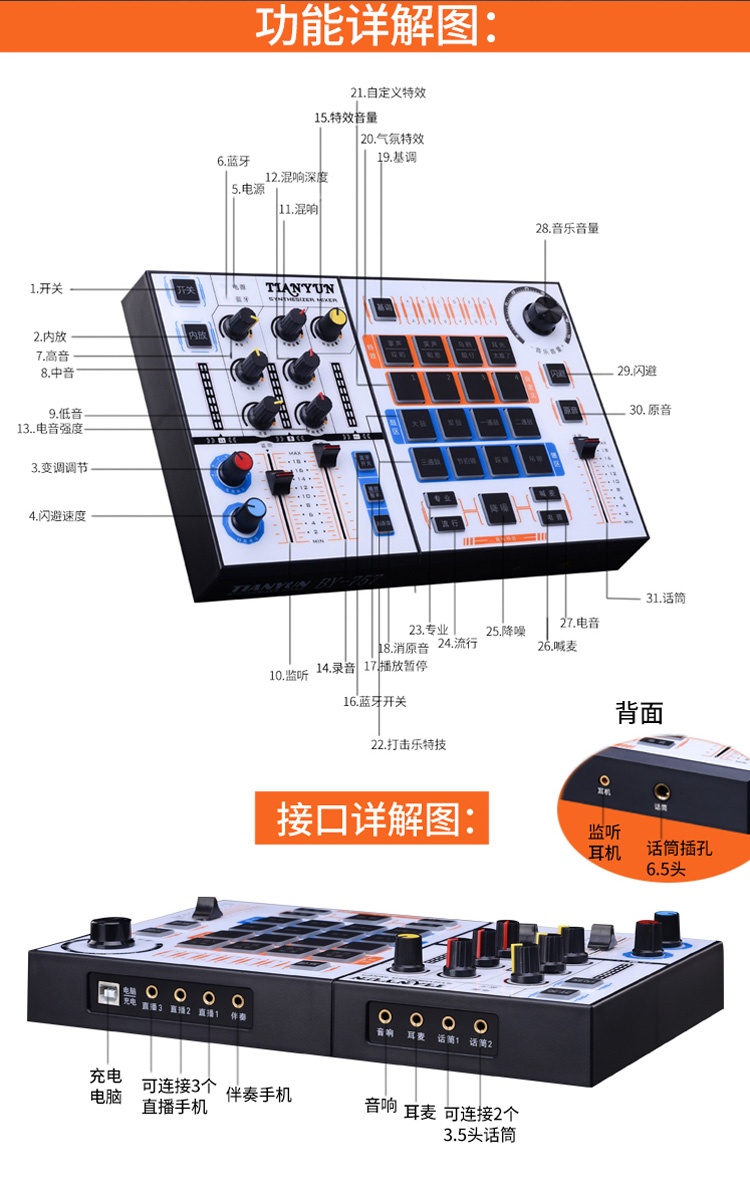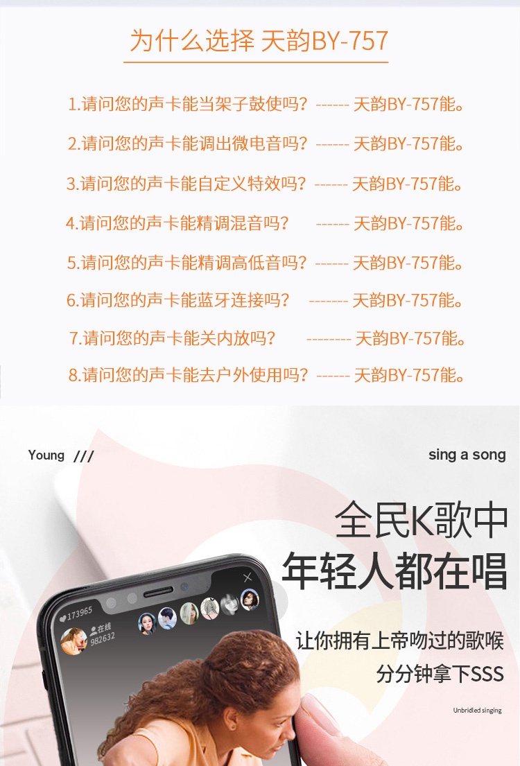 天韵 BY757-E800 手机直播声卡套装