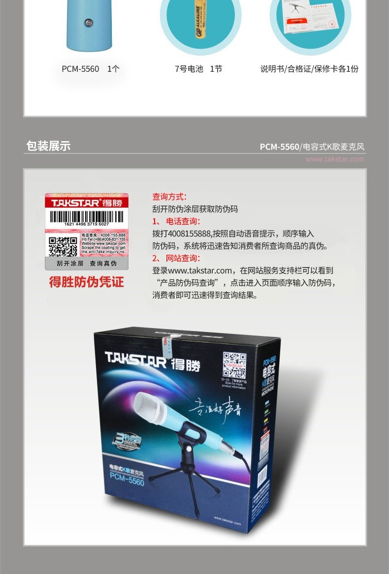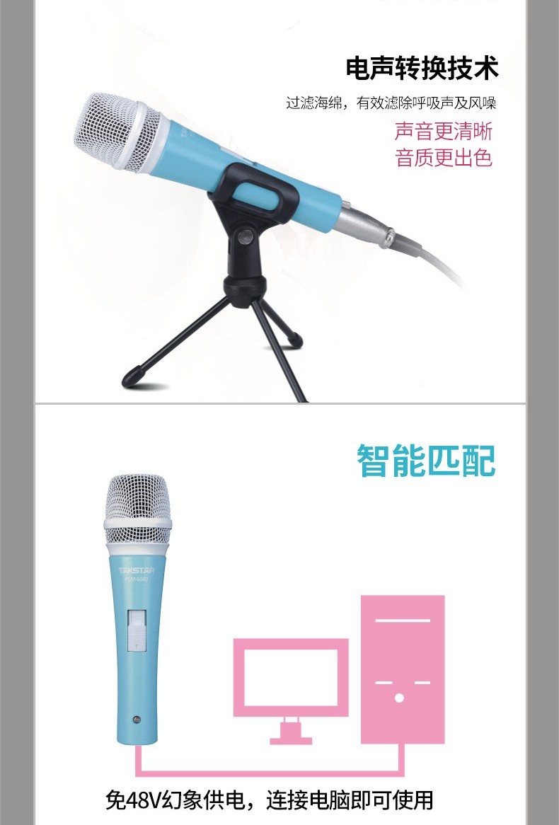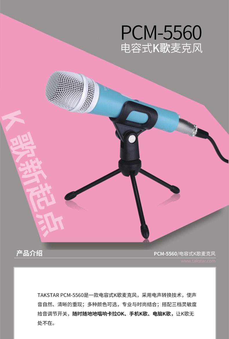 得胜 PCM-5560 电容式K歌有线麦克风 白色