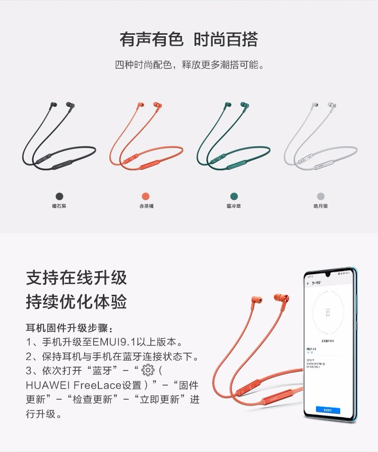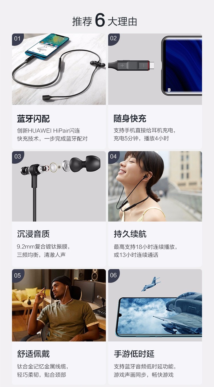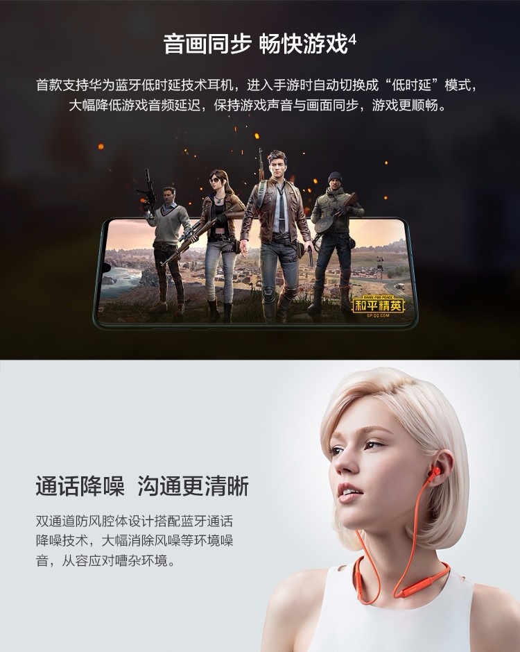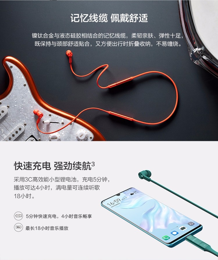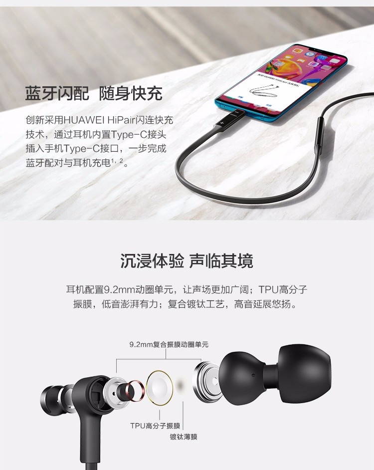 HiPair闪连快充技术,18小时长续航 智慧闪连快充 动听人声 蓝牙耳机 运动耳机 华为耳机