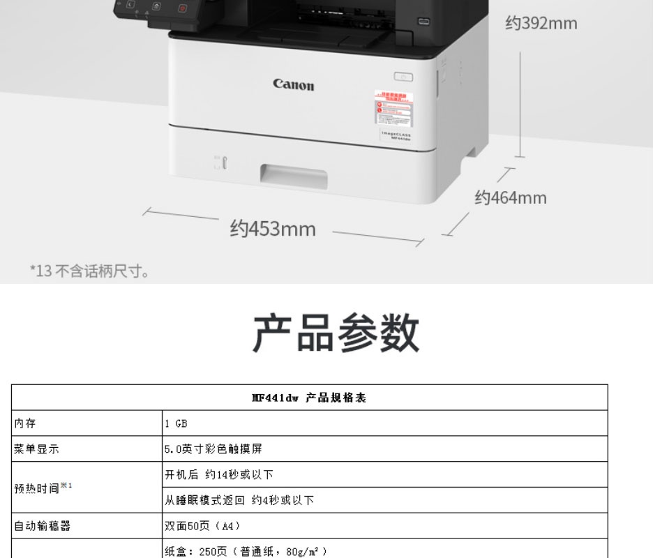 佳能 MF441dw A4黑白激光打印机