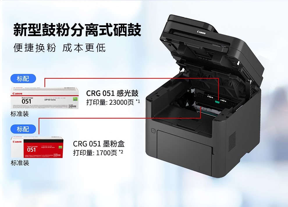 | 适用耗材型号 | 粉盒051/051H 感光鼓051 |