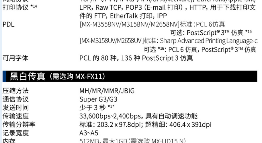 | 打印语言 | PCL的80种,136种PostScript3仿真 |