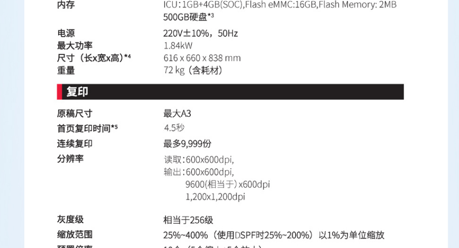 | 包装清单 | 复合机*1 其他随机详见清单 |