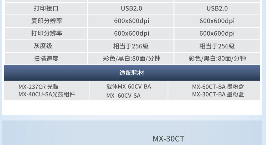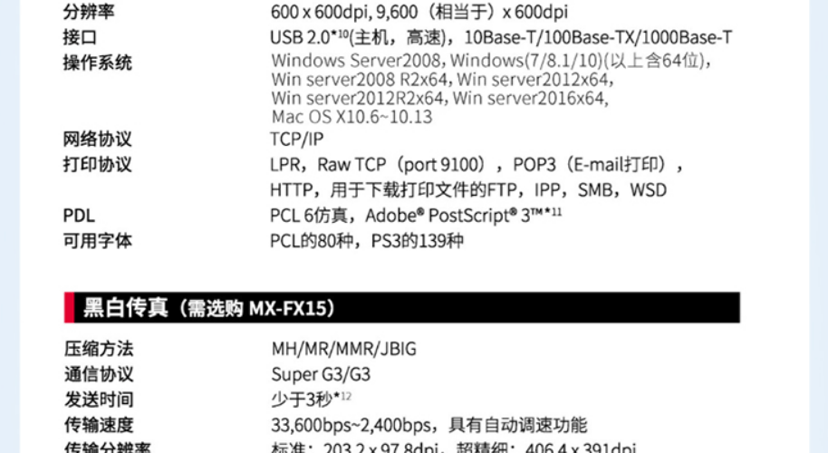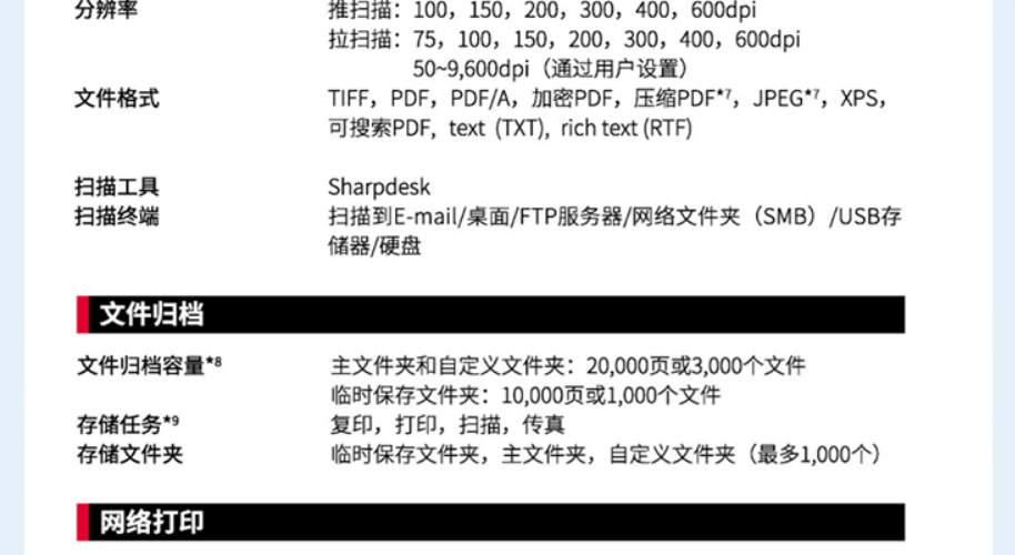 | 扫描文件格式 | TIFF,PDF,PDF/A,加密PDF,JPEG*10,XPS |