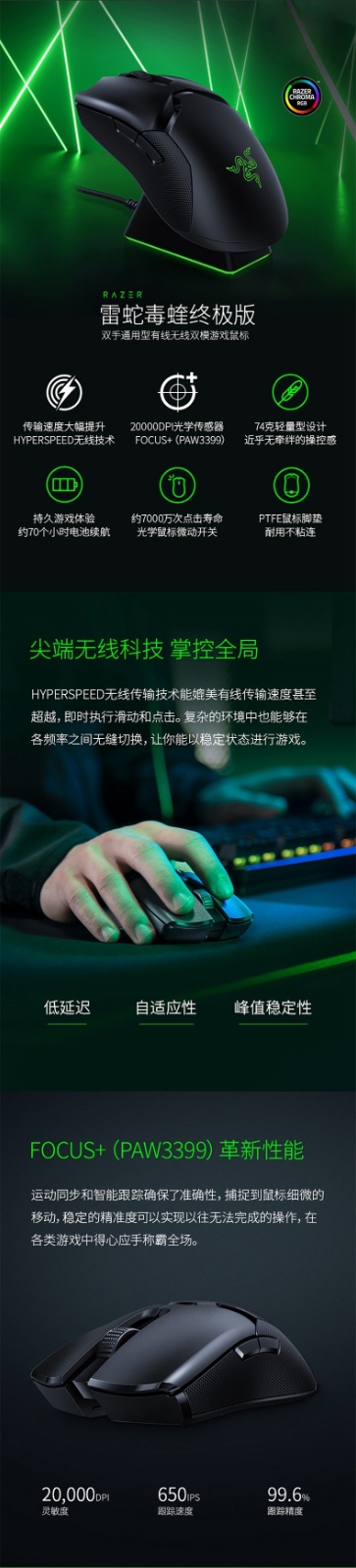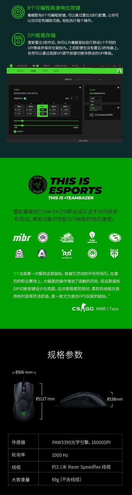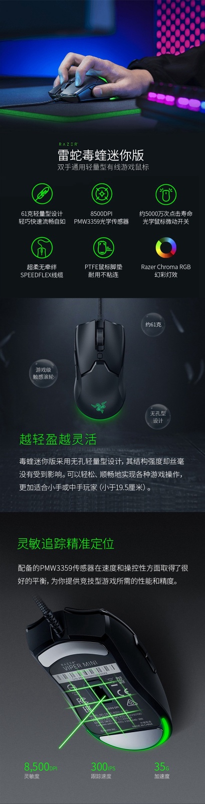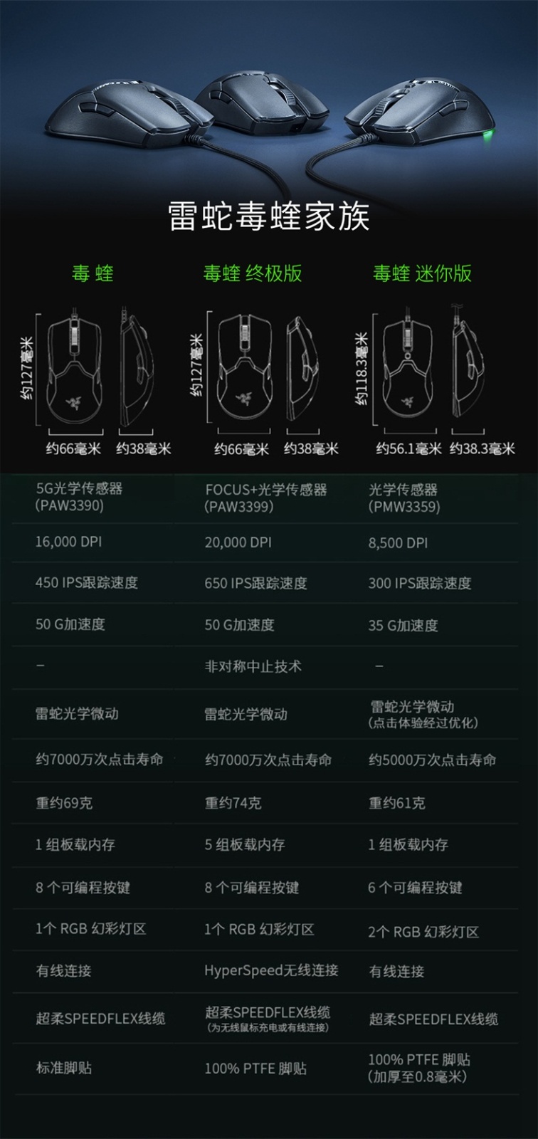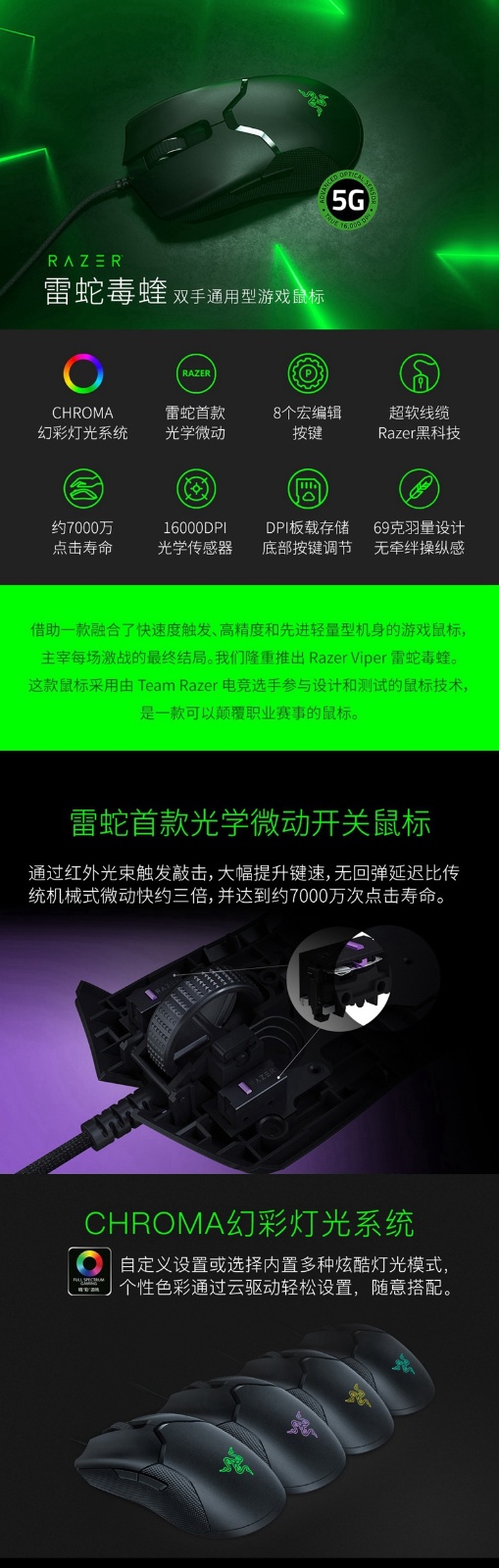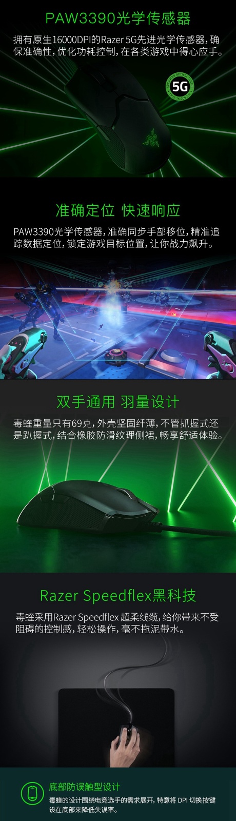 雷蛇 毒蝰69蛇有线 黑色 游戏鼠标