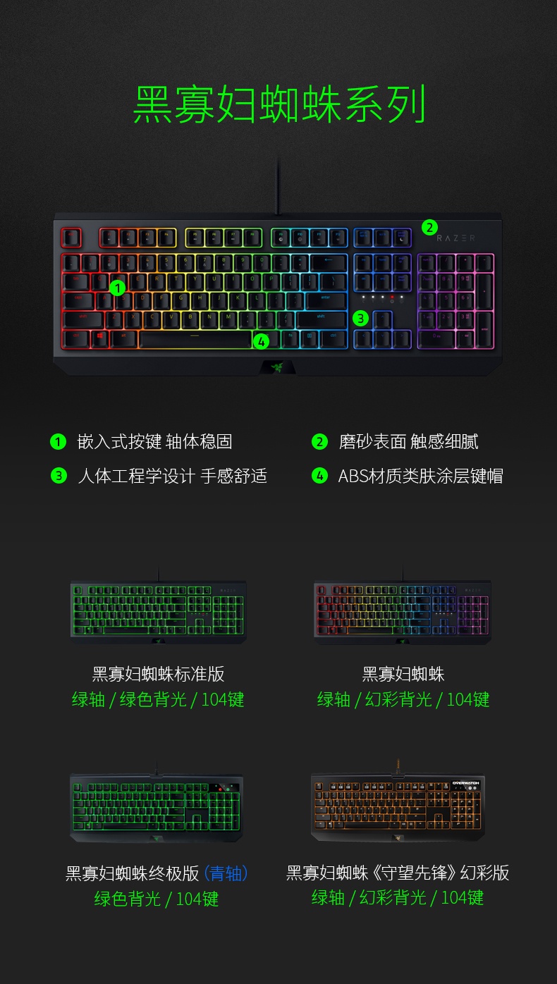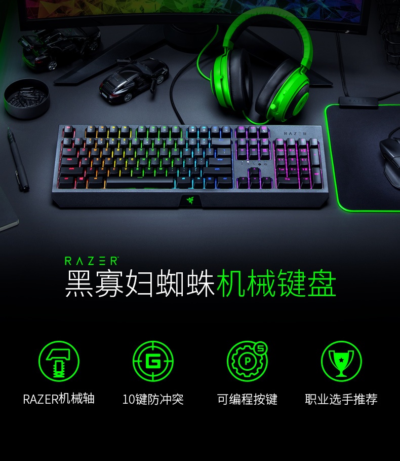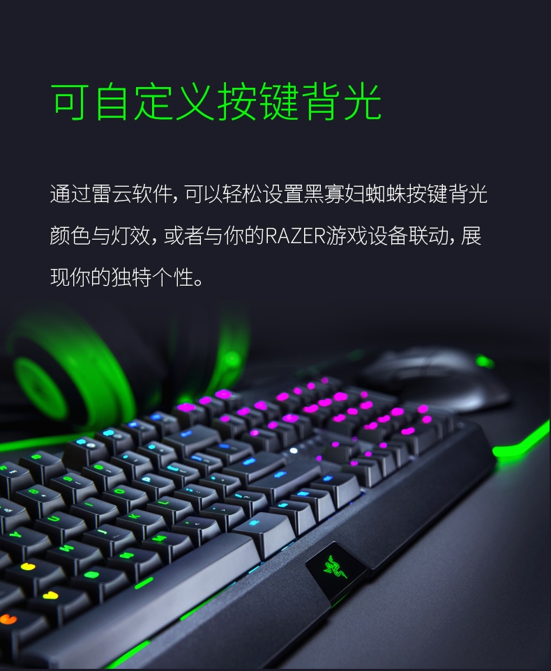 雷蛇 黑寡妇蜘蛛幻彩版 黑色 游戏键盘