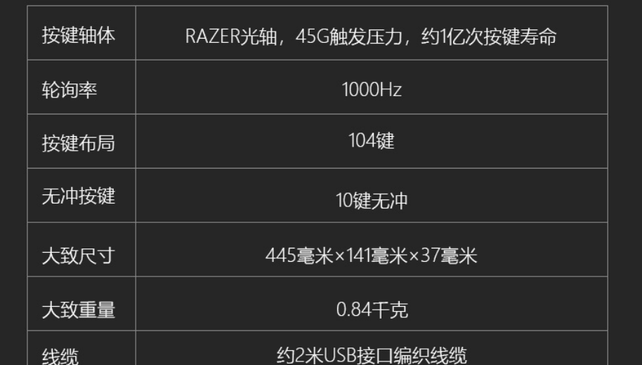 雷蛇 猎魂光蛛标准版 黑色 游戏键盘